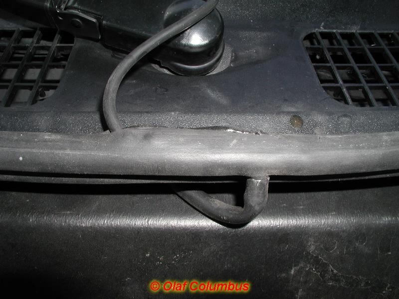 The T-connection and part of the tube itself is placed in the sealing of the bonnet. |